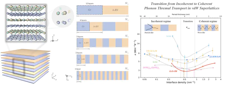 The van der Waals (vdW) superlattice, obtained by applying the concept of the periodic superlattice to two-dimensional materials using low-energy vdW physical assembly, is undoubtedly an instrumental avenue for the modulation of material properties. In the field of nanoscale thermal transport, the influence of the periodic structure of superlattice on the wave-particle phonon transport regime arouses substantial interests from the standpoint of basic physics and applied science. In the Graphene/h-BN vdW superlattice, we have found the wave-particle crossover of phonon transport, which is reflected in the transition from incoherent to coherent regime as the interface density increases. The analysis reveals that the increased thermal conductivity owing to coherent transport effects will amply compensate for the progressively increasing interface phonon scattering throughout this process. In addition, due to the stronger effects of the above two aspects, the superlattices with higher interface density are more sensitive to changes in temperature and interface coupling strength, which are manifested in the rate of change in thermal conductivity caused by their alteration, respectively. These results establish an in-depth understanding of coherent phonon transport while exploring the possibility of phonon wave-particle crossover in vdW superlattices, providing guidance for related thermal management based on phonon engineering.